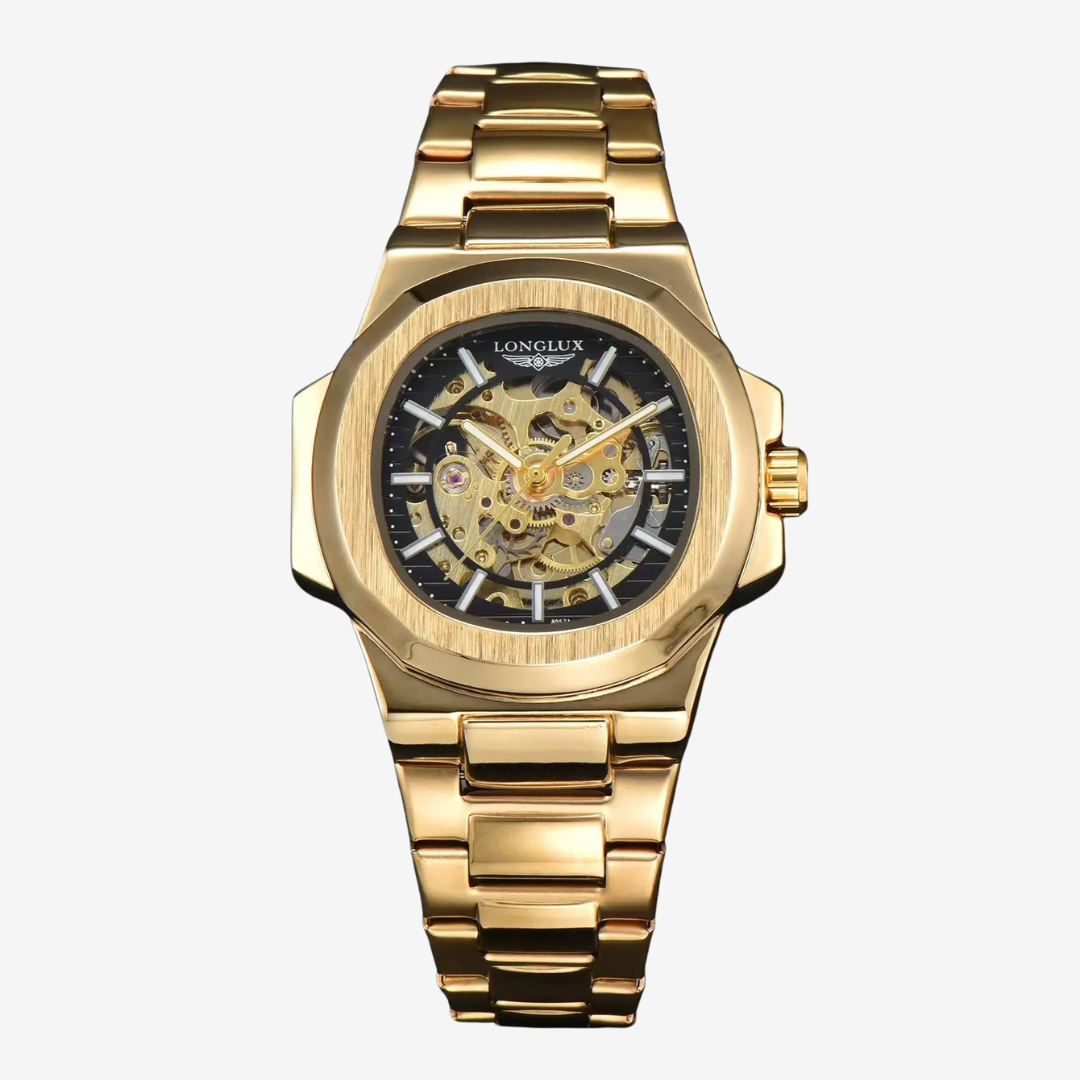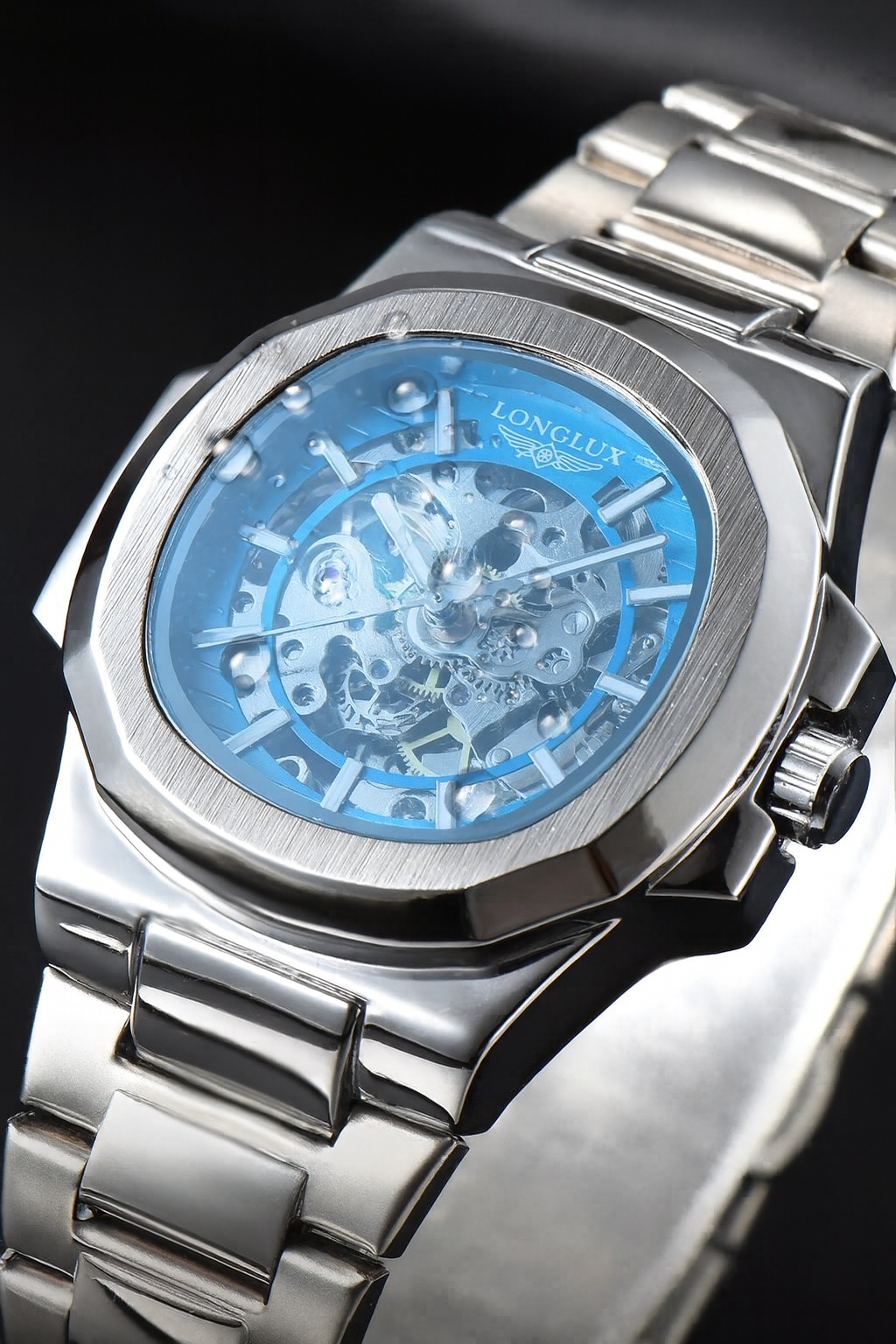 - Features: Skeleton display, waterproof (3 ATM), luxury finish