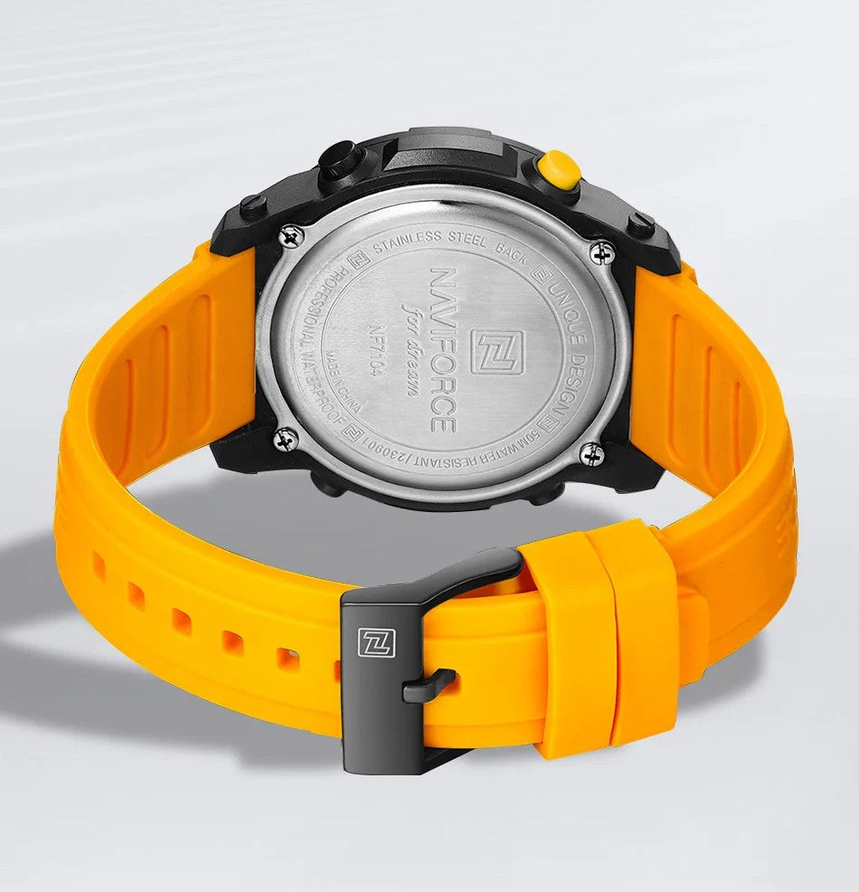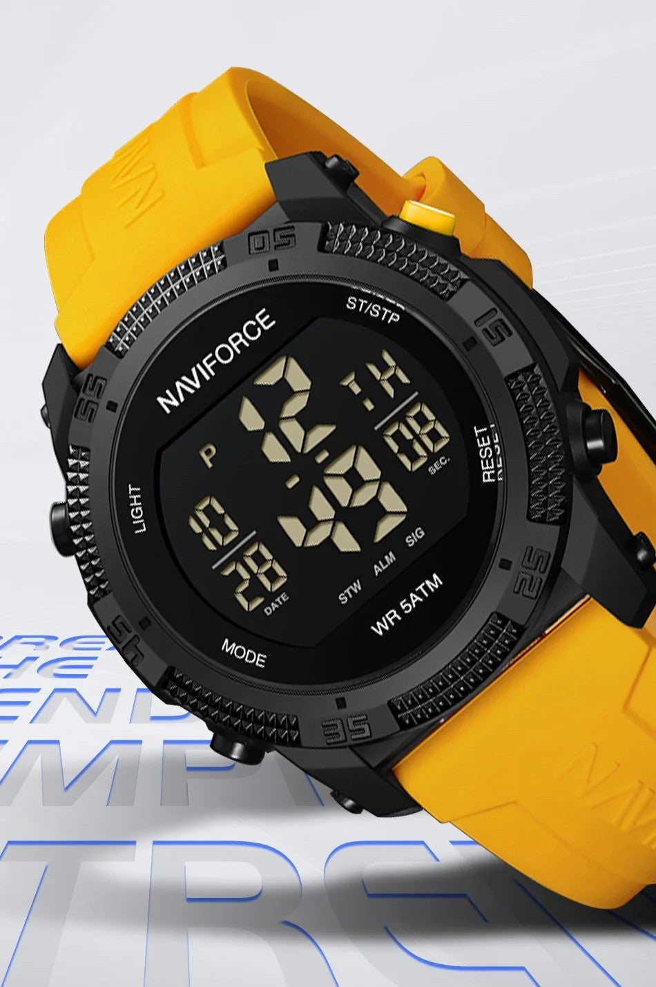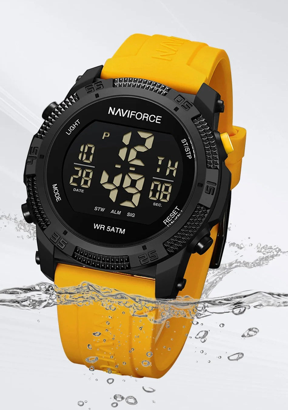 Clear luminous display with alarm, stopwatch, and full calendar for everyday functionality.